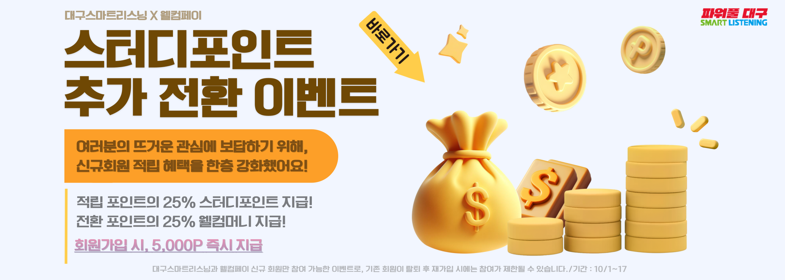 [대구스마트리스닝 X 웰컴페이] 스터디포인트 추가 적립 이벤트~ 2025-10-17