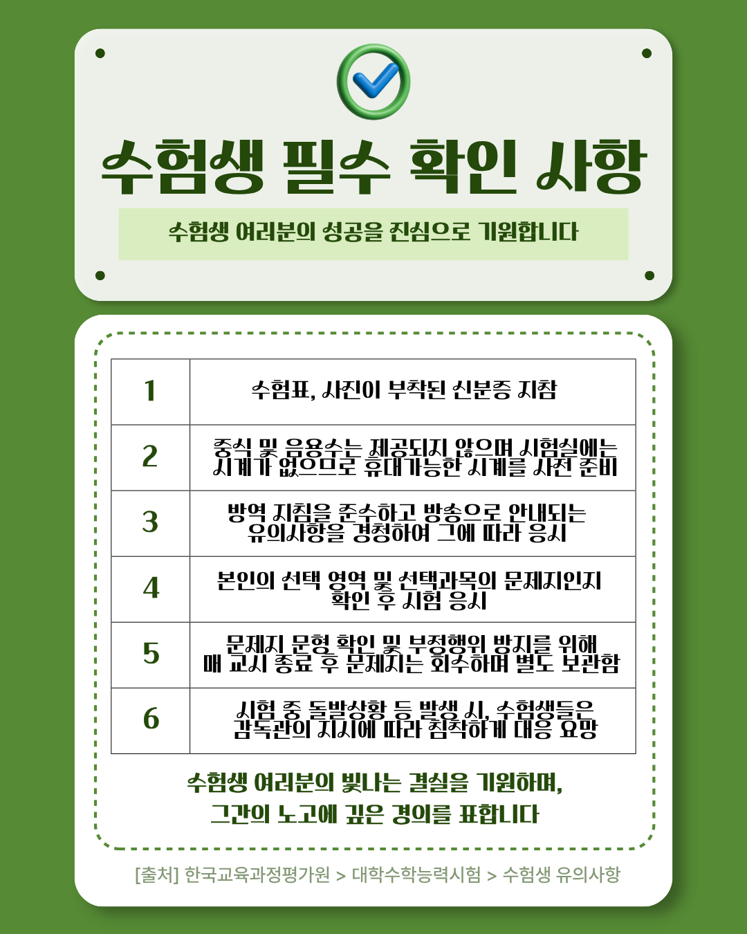 [수험생 유의사항] 수능 시험장, 이것만은 꼭 알고가자!